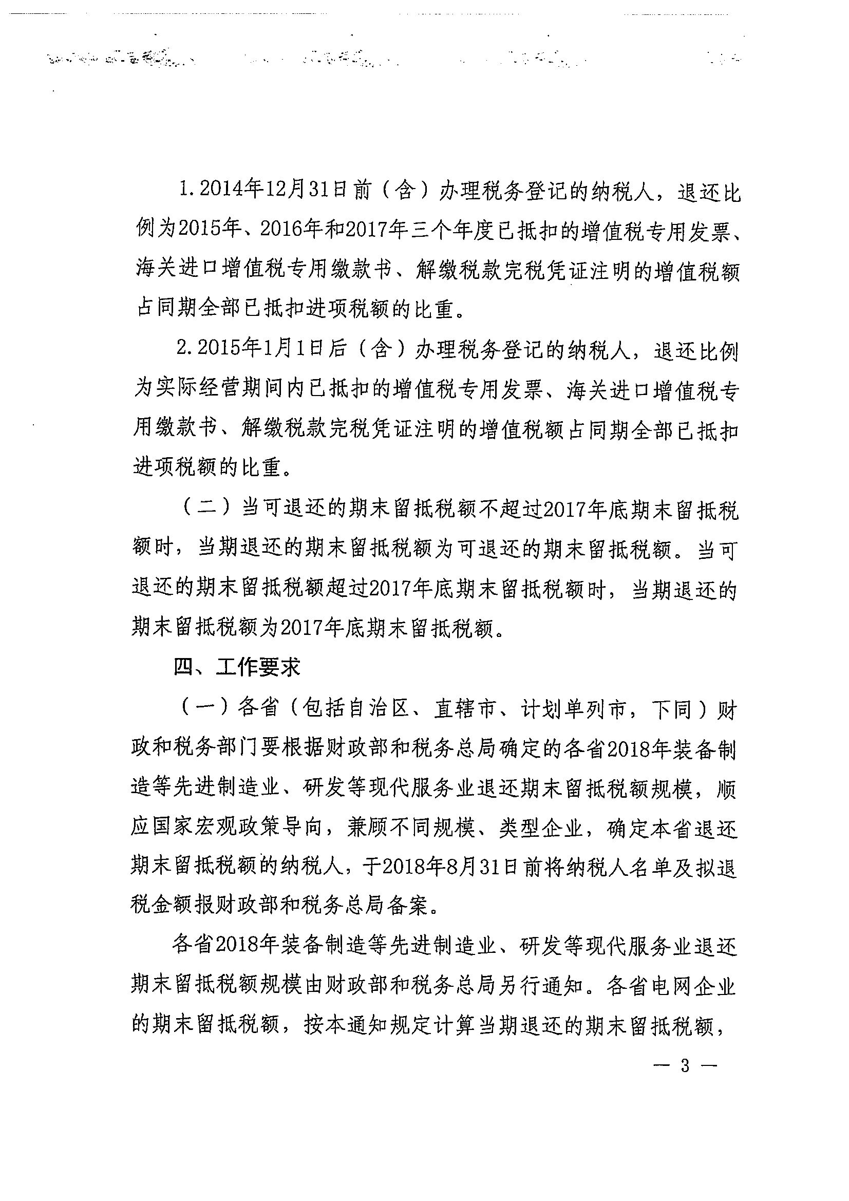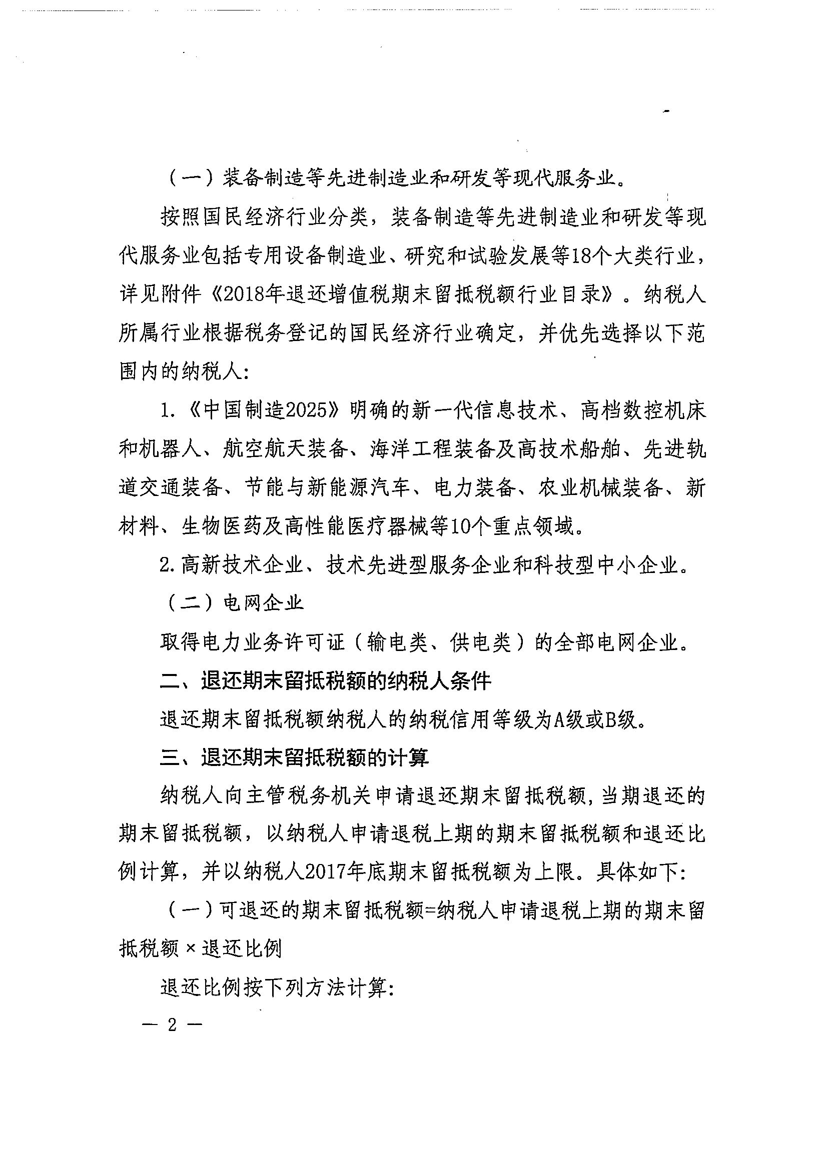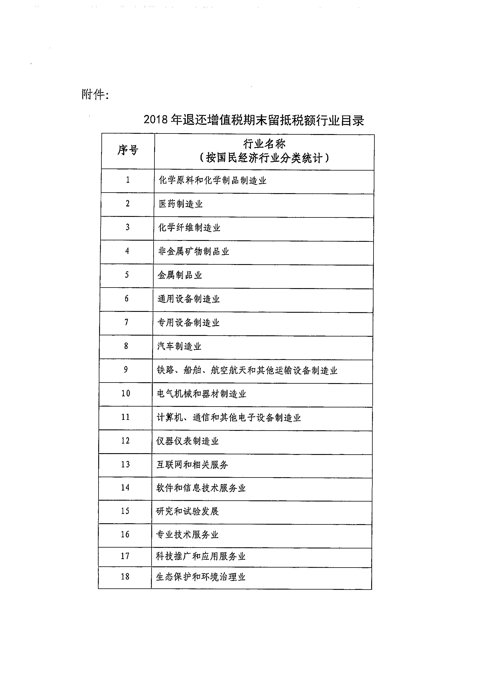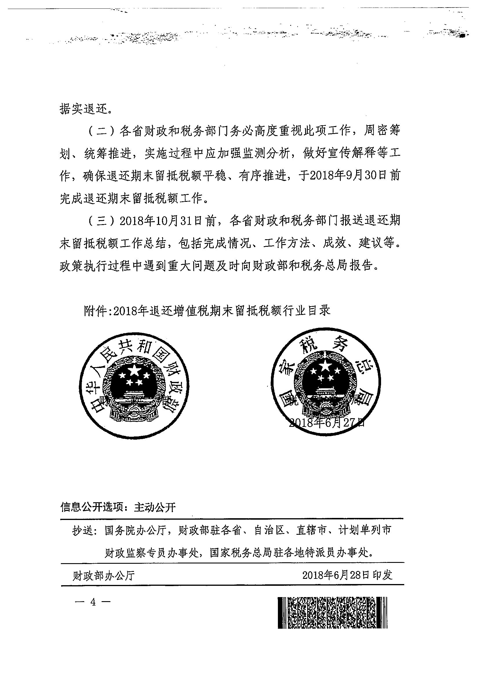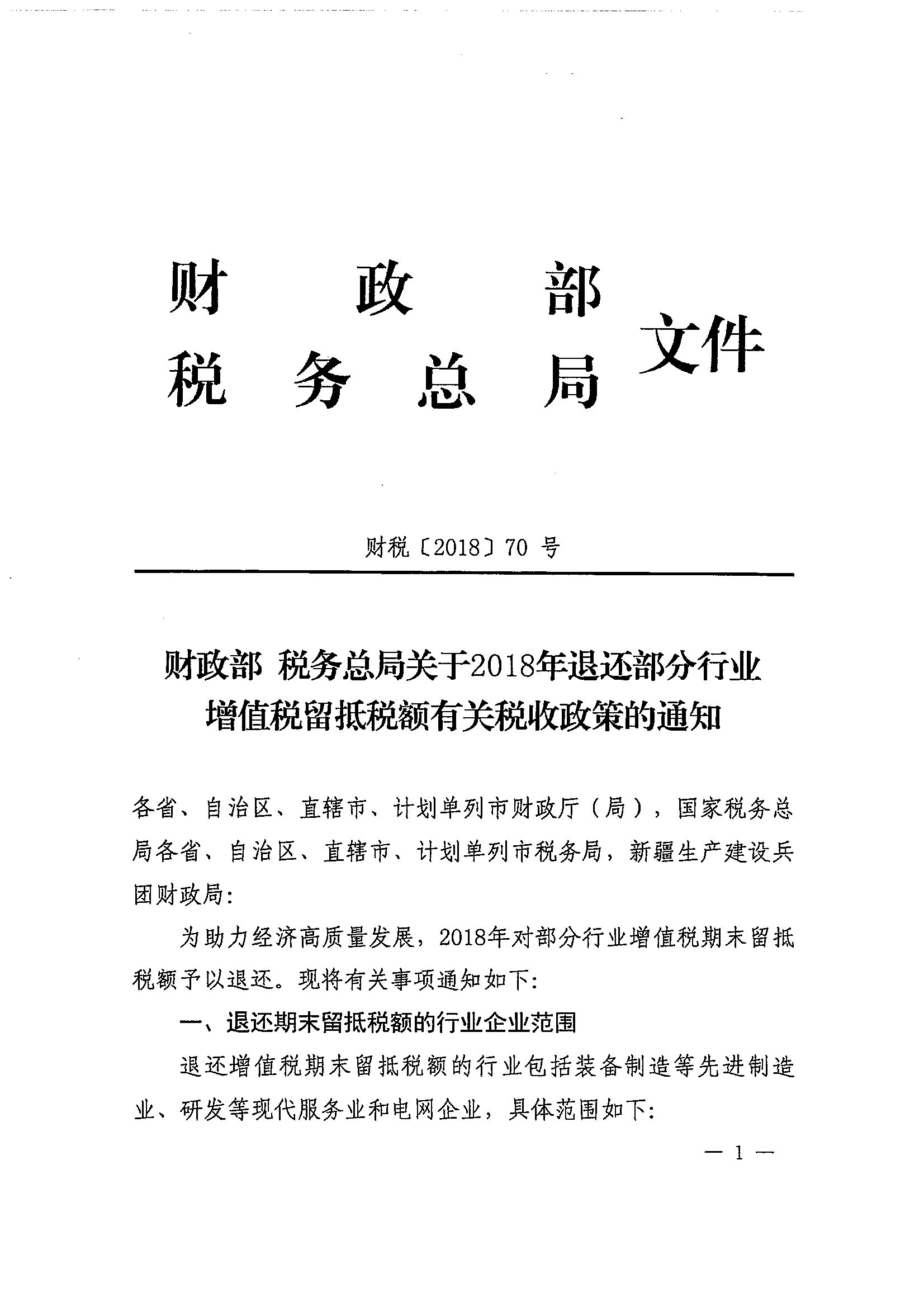 财政部 税务总局关于2018年退还部分行业增值税留抵税额有关税收政策的通知