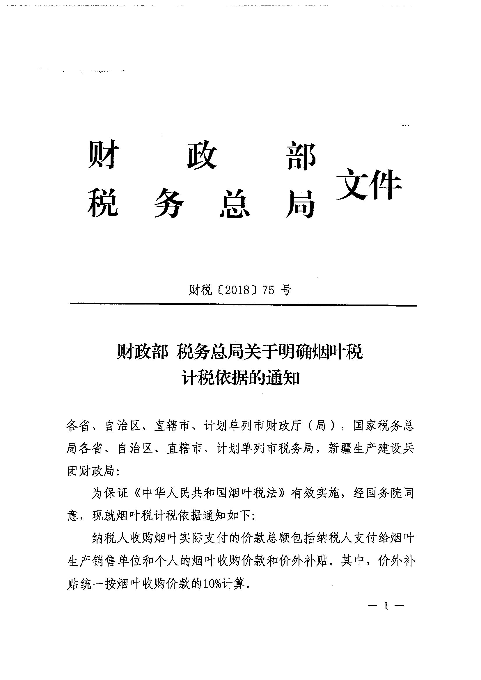 财政部 税务总局关于明确烟叶税计税依据的通知