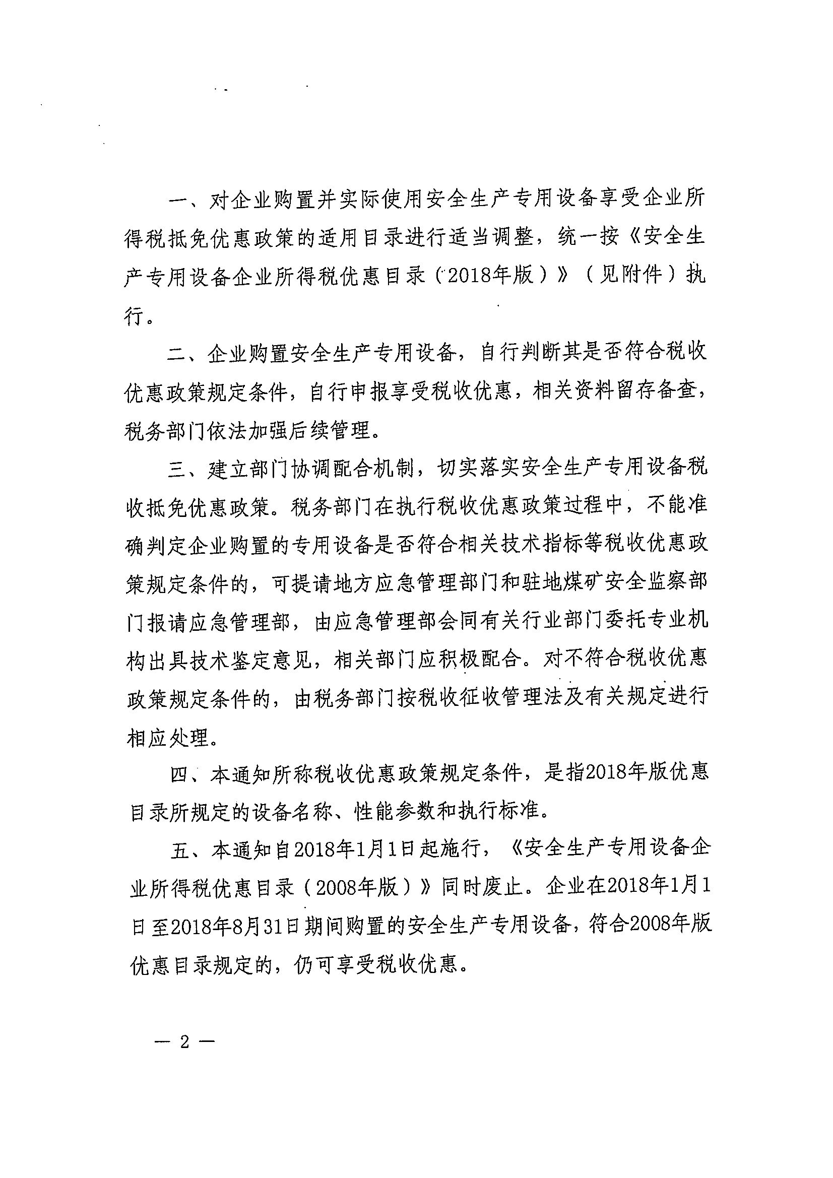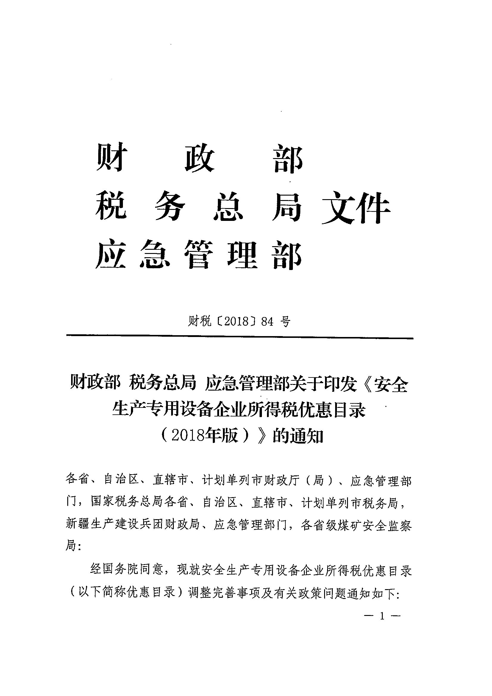 财政部 税务总局 应急管理部关于印发《安全生产专用设备企业所得税优惠目录(2018年版)》的通知