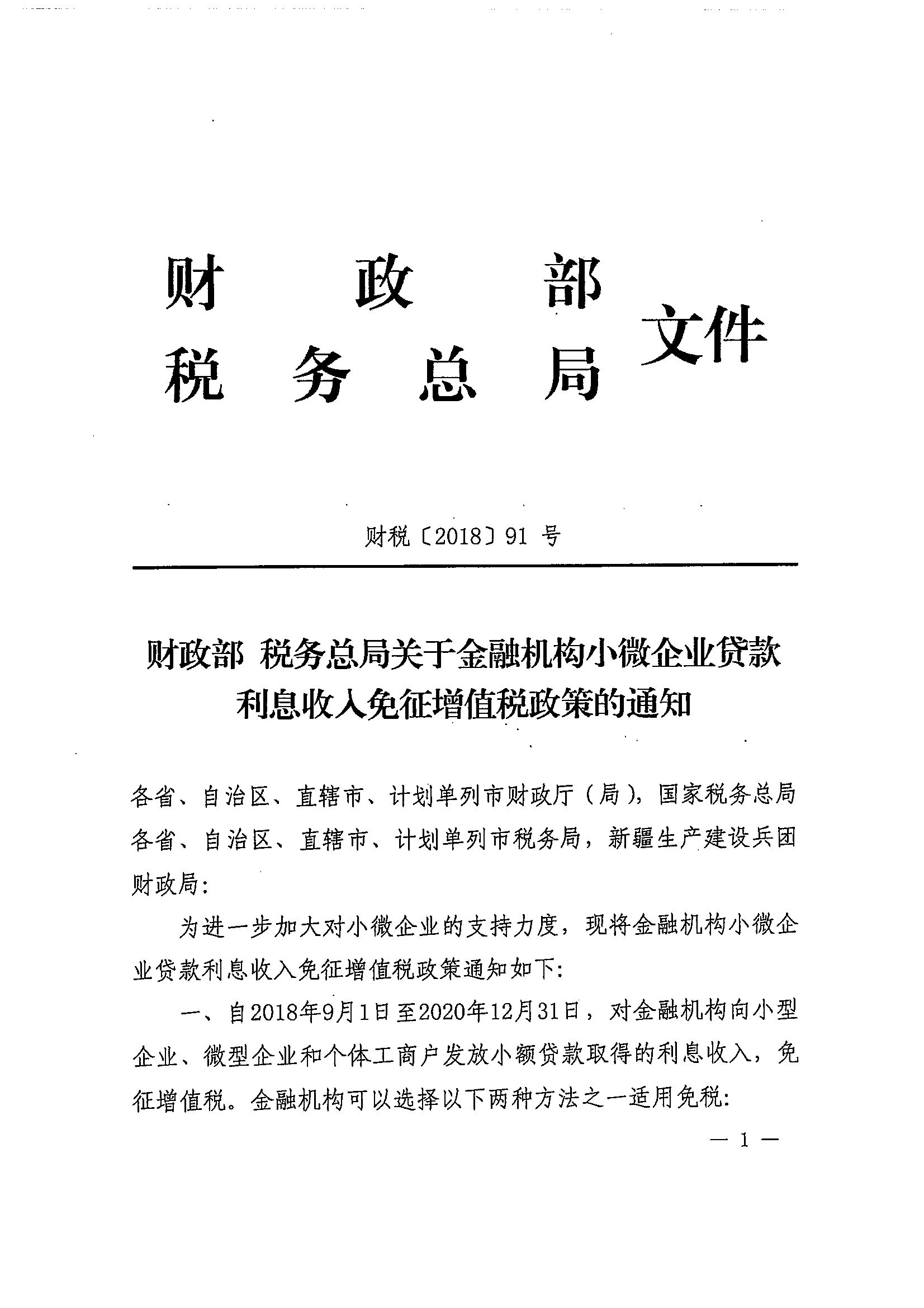 财政部 税务总局关于金融机构小微企业贷款利息收入免征增值税政策的通知