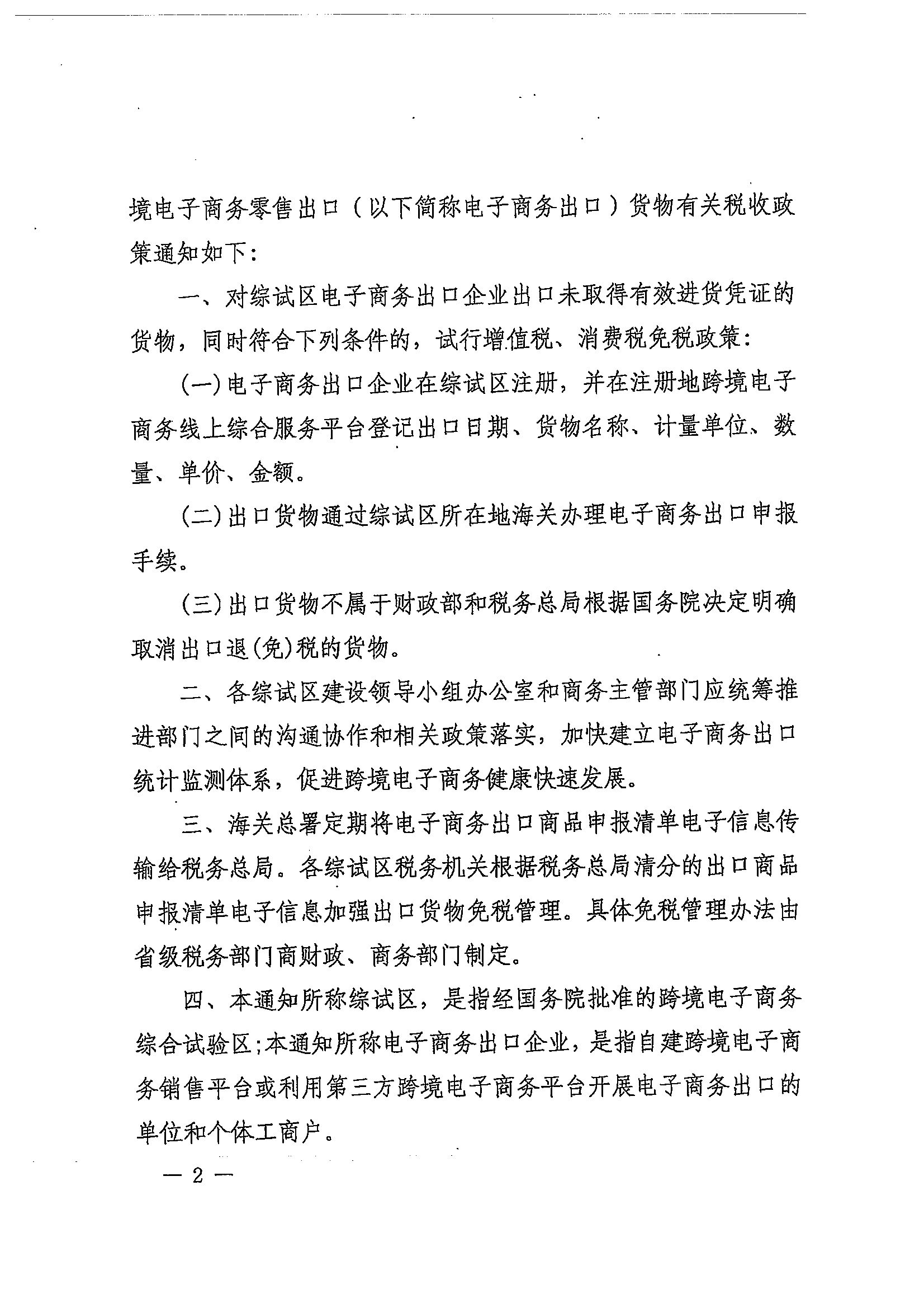 财政部 税务总局 商务部 海关总署关于跨境电子商务综合试验区零售出口货物税收政策的通知