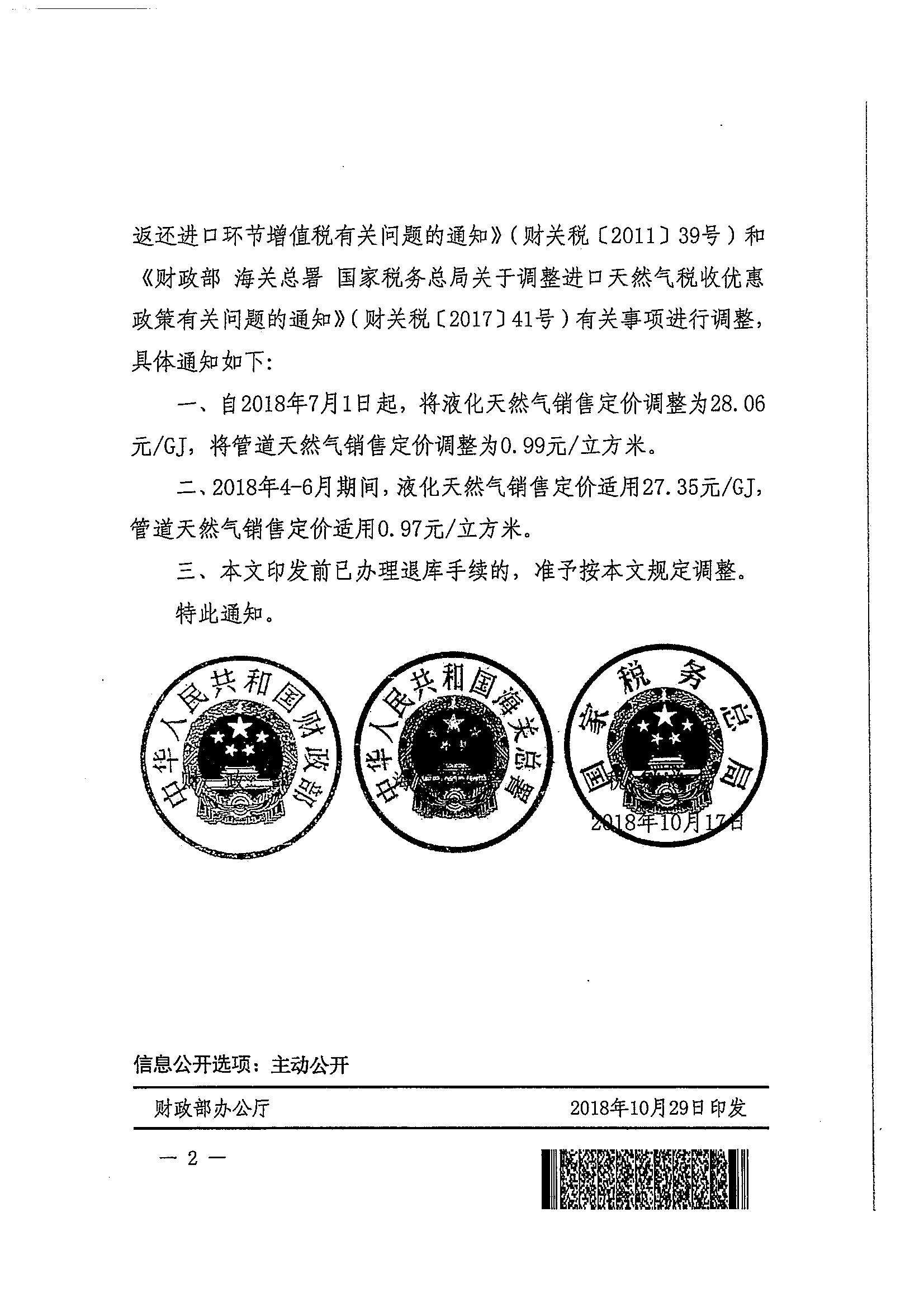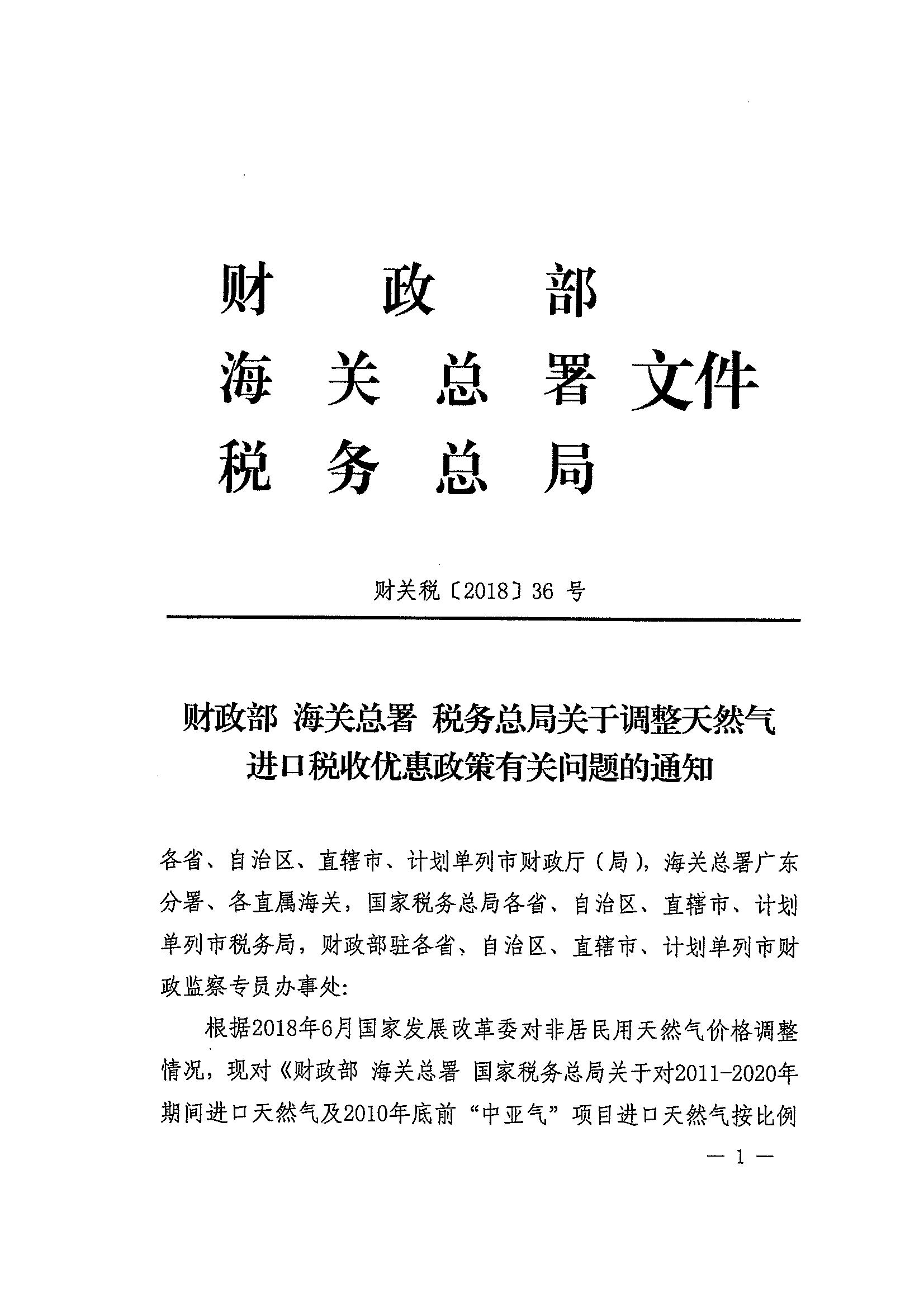 财政部 海关总署 税务总局关于调整天然气进口税收优惠政策有关问题的通知