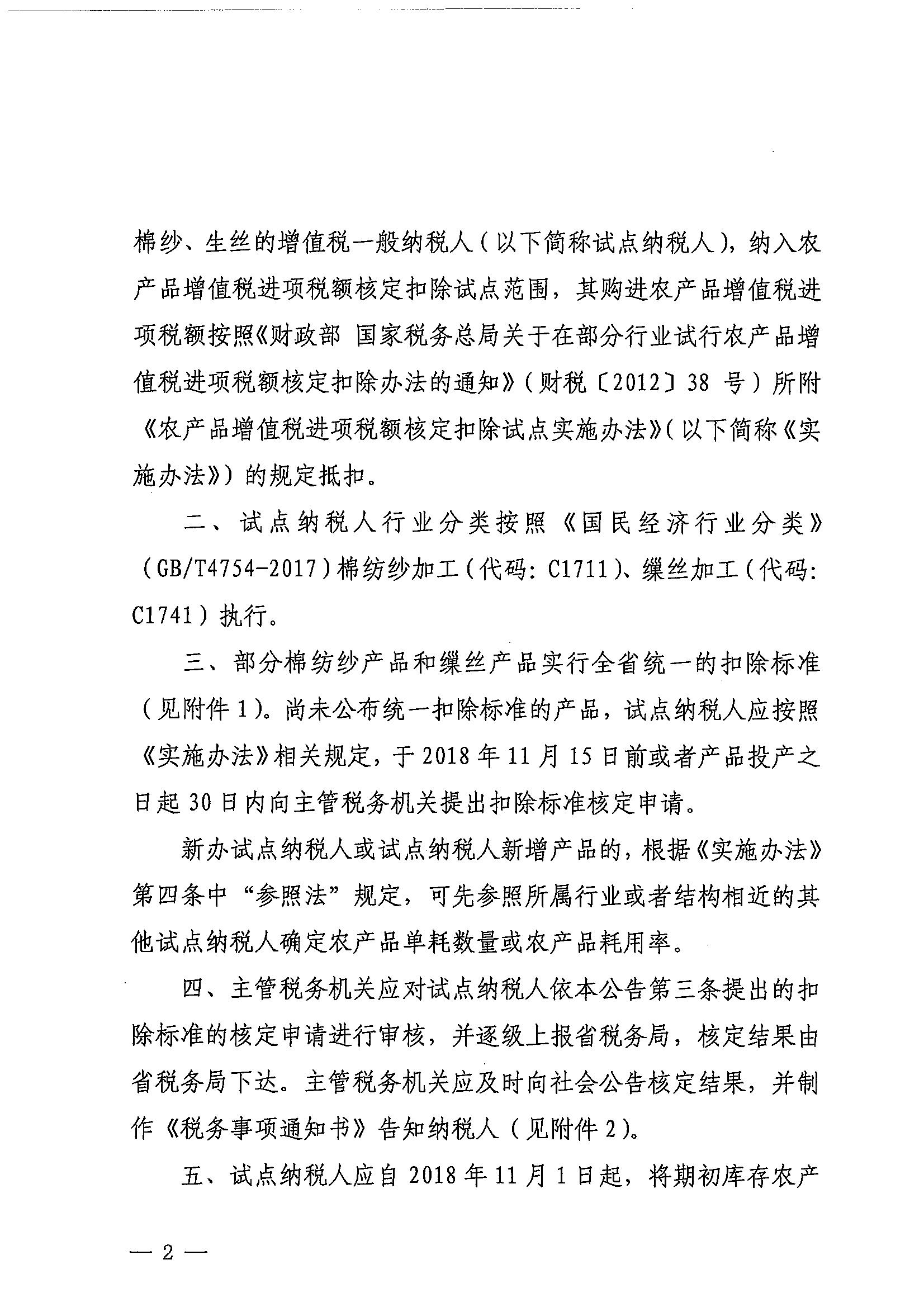 国家税务总局广东省税务局 广东省财政厅关于在棉纺纱、缫丝加工行业试行农产品增值税进项税额核定扣除办法的公告