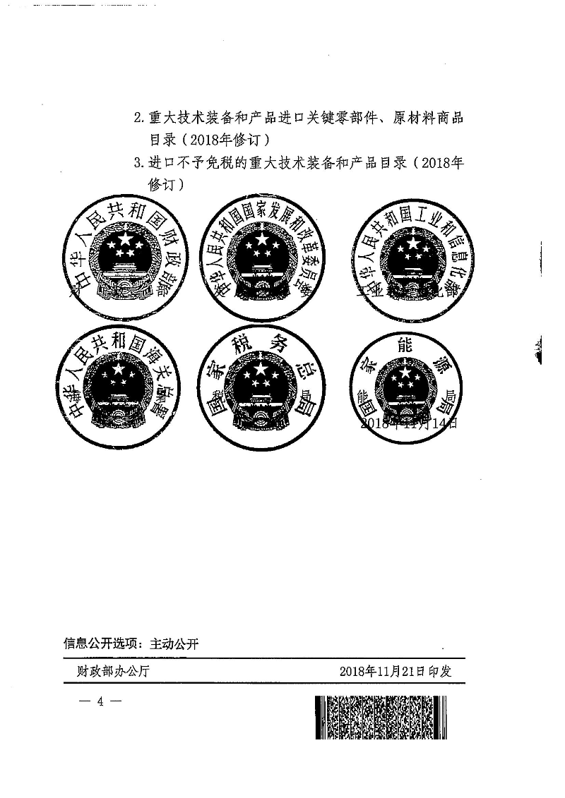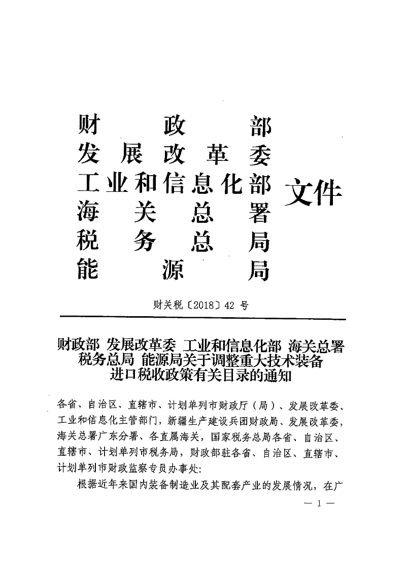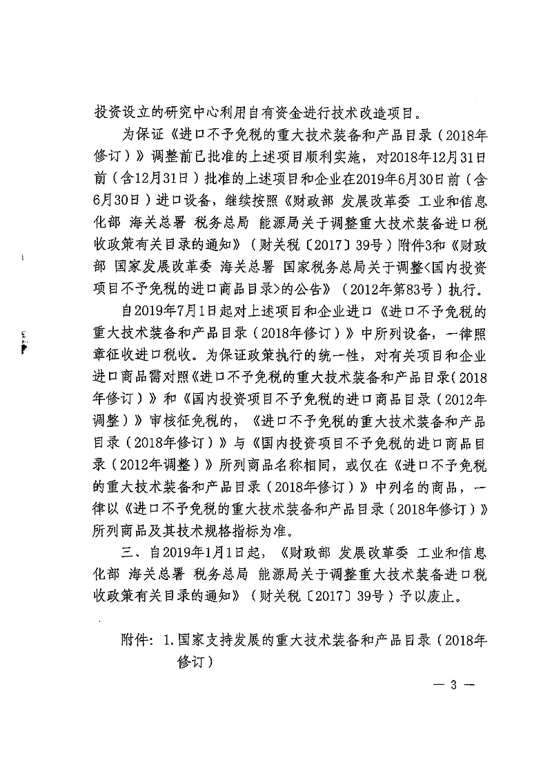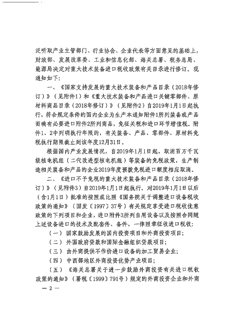 财政部 发展改革委 工业和信息化部 海关总署 税务总局 能源局关于调整重大技术装备进口税收政策有关目录的通知