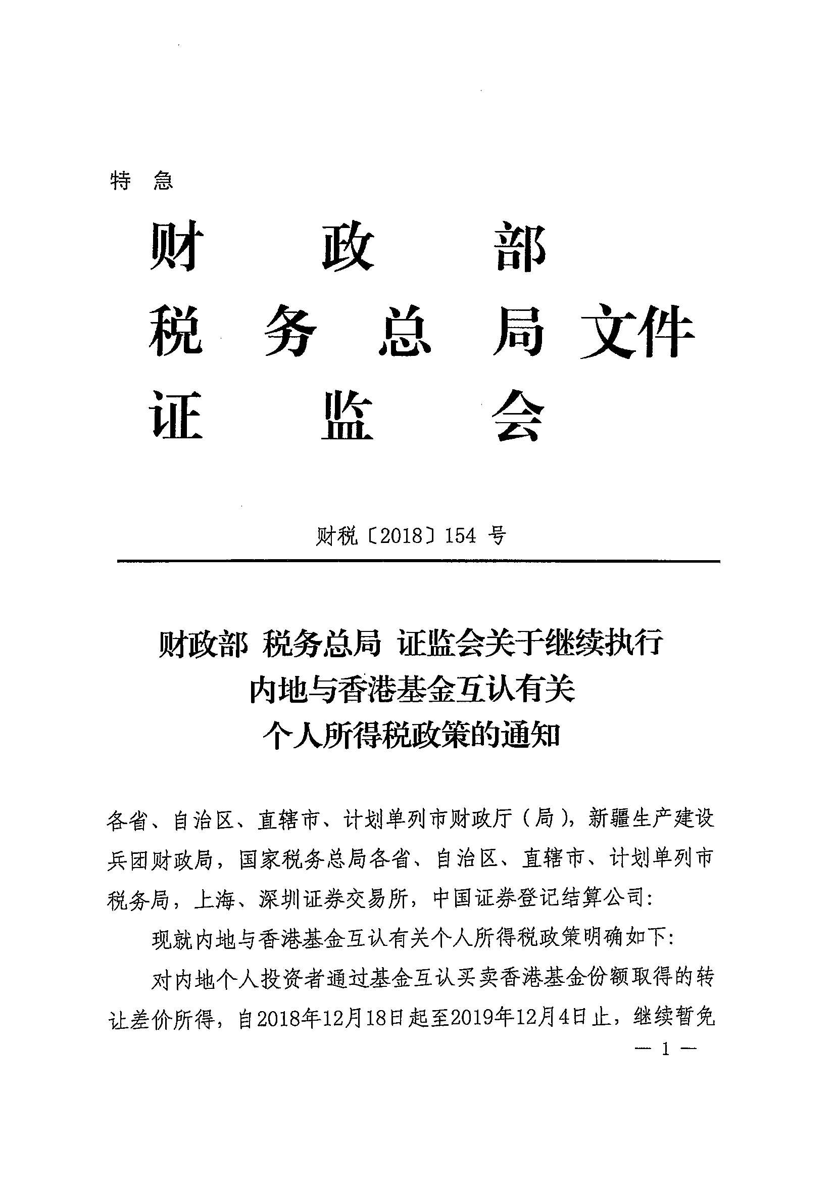 财政部 税务总局 证监会关于继续执行内地与香港基金互认有关个人所得税政策的通知