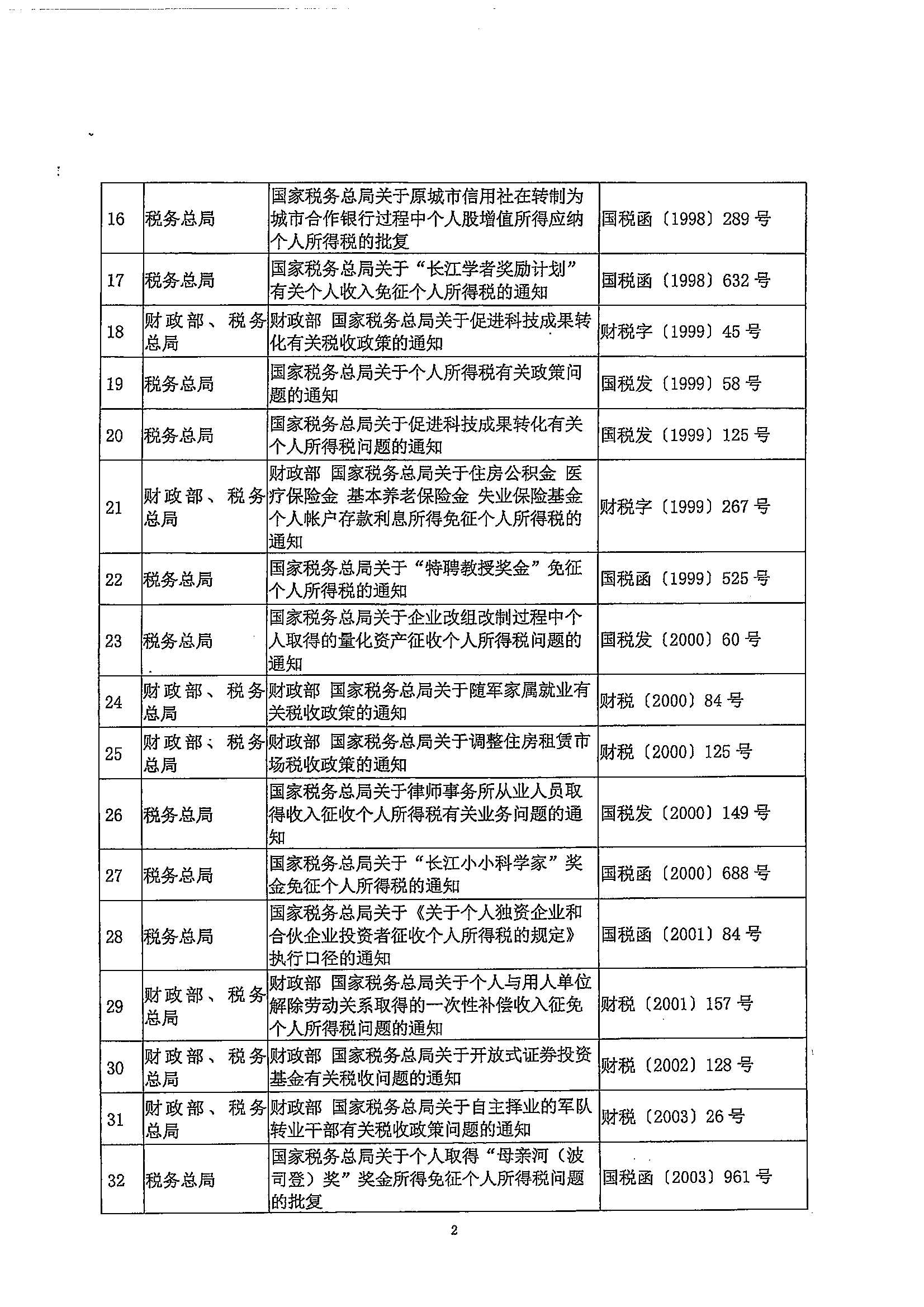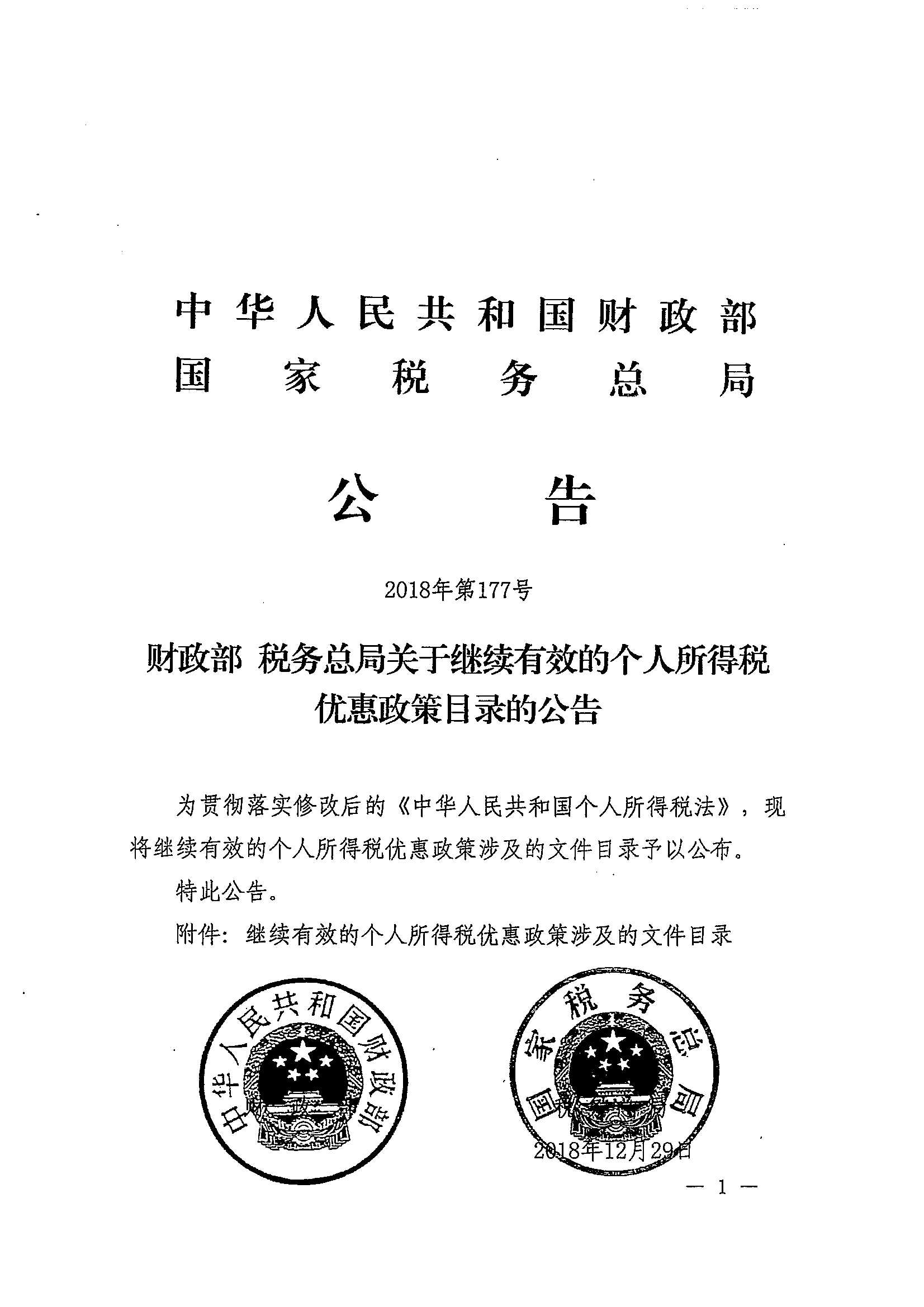 财政部 税务总局关于继续有效的个人所得税优惠政策目录的公告