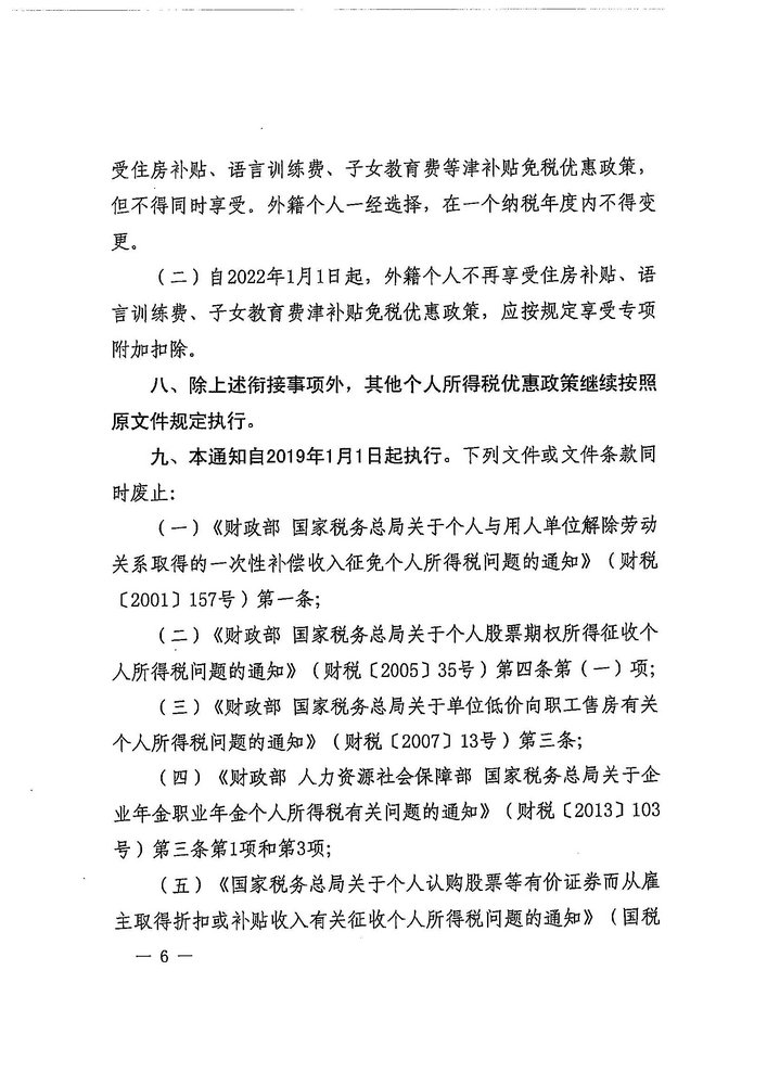 财政部 税务总局关于个人所得税法修改后有关优惠政策衔接问题的通知