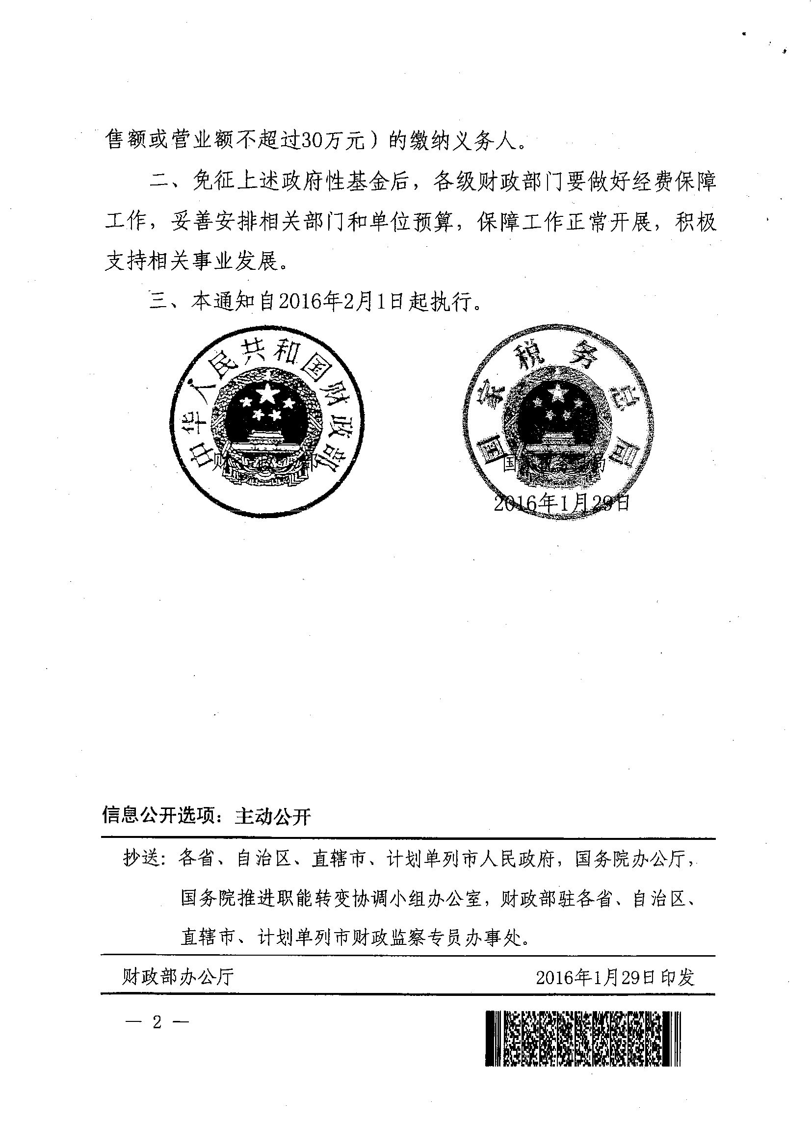 财政部 国家税务总局关于扩大有关政府性基金免征 范围的通知