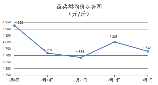 据本市21家农贸市场监测数据显示,上周2月28日至3月6日(下同)市场上各类“菜篮子”商品供应充足,所监测的7大类“菜篮子”商品价格为2涨5跌。其中:粮食类商品价格稳中微升,食用油类、肉禽蛋类、水产类商品价格总体略降,蔬果类商品价格涨跌互现,从供需情况来看,预计近期市场商品价格仍将以窄幅波动为主,部分应季蔬果商品价格仍有下调空间。