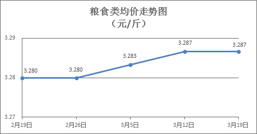 粮食类商品价格保持稳定。本周所监测的6种粮食商品价格均持平,综合零售均价为3.287元/斤。其中:晚籼米、丝苗米、标准粉零售均价分别为每斤3.26元、3.44元、3.14元,环比均持平。