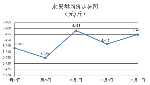 水果类商品价格小幅波动。上周所监测的6种水果商品价格波动情况为2涨3跌1平,综合零售均价为6.455元/斤,环比上涨0.13%。其中苹果、香蕉、葡萄零售均价分别为每斤7.32元、3.05元、12.85元,环比分别上涨1.10%、下降0.33%、持平。
