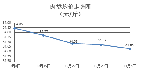 肉类商品价格微幅盘降。上周所监测的8种肉类商品价格波动情况为4涨3跌1平,综合零售均价为34.63元/斤,环比下降0.12%。其中:排骨、精瘦肉、有皮上肉、牛肉、带骨羊肉零售均价分别为每斤29.65元、18.81元、14.43元、54.06元、43.98元,环比分别下降0.74%、下降0.69%、持平、上涨0.26%、下降0.68%。