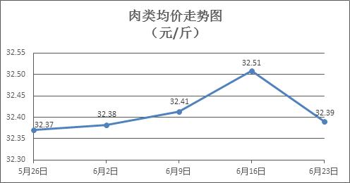 肉类商品价格涨少降多。所监测的8种肉类商品价格波动情况为4涨4跌,综合零售均价为每斤32.39元,环比下降0.37%。其中:排骨、精瘦肉、牛肉、带骨羊肉零售均价分别为每斤30.10元、18.57元、46.68元、43.79元,环比分别上涨0.07%、下降0.70%、下降1.71%、下降0.11%。
