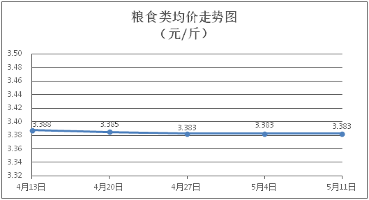 粮食类商品价格保持稳定。所监测的4种粮食类商品价格均持平,综合零售均价为每斤3.383元。其中:丝苗米、面粉零售均价分别为每斤3.49元、3.40元,环比均持平。