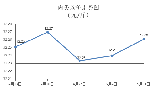 肉类商品价格稳中微涨。所监测的8种肉类商品价格波动情况为3涨1跌4平,综合零售均价为每斤32.26元,环比上涨0.07%。其中:排骨、精瘦肉、肋条肉、牛肉、带骨羊肉零售均价分别为每斤30.70元、19.34元、15.90元、46.21元、42.04元,环比分别持平、上涨0.89%、上涨0.06%、持平、下降0.26%。