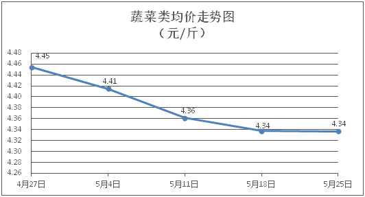 据本市21家农贸市场监测数据显示,上周(5月19日至5月25日)市场上各类“菜篮子”商品供应充足,所监测的7大类“菜篮子”商品价格环比总体表现为4涨2跌1平。其中:粮油类商品价格基本平稳,肉禽蛋类、水果类、水产类商品价格总体略涨,蔬菜类商品价格升降互现。