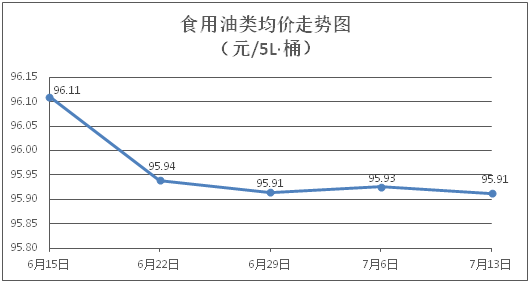 食用油类商品价格基本平稳。所监测的9种食用油(5L装)商品价格波动情况为1跌8平,综合零售均价为每桶95.91元,环比下降0.01%。其中:金龙鱼花生油、玉米油零售均价为每桶102.83元、76.06元,环比分别持平、下降0.16%。