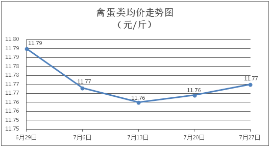家禽类商品价格微幅上涨。所监测的5种禽蛋类商品价格波动情况为3涨1跌2平,综合零售均价为每斤11.77元,环比上涨0.05%。其中:白条鸡、白条鸭零售均价分别为每斤20.71元、15.41元,环比分别上涨0.24%、上涨0.13%;鸡蛋、鸭蛋零售均价分别为每斤6.52元、7.07元,环比分别持平、下降0.56%。