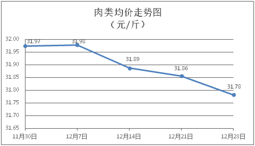 肉类商品价格微幅下降。所监测的肉类商品价格波动情况为2涨5跌1平,综合零售均价为每斤31.78元,环比下降0.23%。其中:排骨、精瘦肉、牛肉、带骨羊肉零售均价分别为每斤29.35元、18.20元、46.66元、41.36元,环比分别下降0.84%、上涨0.22%、下降0.45%、下降0.29%。