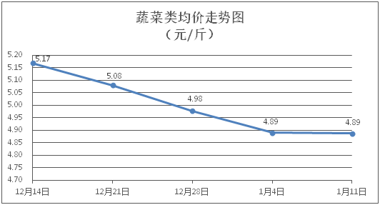 据本市21家农贸市场监测数据显示,上周(1月5日至1月11日)市场上各类“菜篮子”商品供应充足,所监测的7大类“菜篮子”商品价格环比总体表现为3涨3跌1平。其中:粮油类、肉禽蛋类商品价格稳中略涨,蔬果类、水产类商品价格升降互现。
