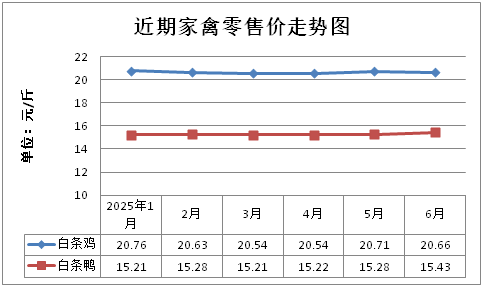 白条鸡、白条鸭零售均价分别为每斤20.66元、15.43元,环比分别下降0.24%、上涨0.98%,同比分别上涨2.53%、上涨2.80%;鸡蛋、咸鸭蛋零售均价分别为每斤6.62元、9.19元,环比分别下降0.45%、下降0.22%,同比分别上涨4.09%、上涨2.45%。