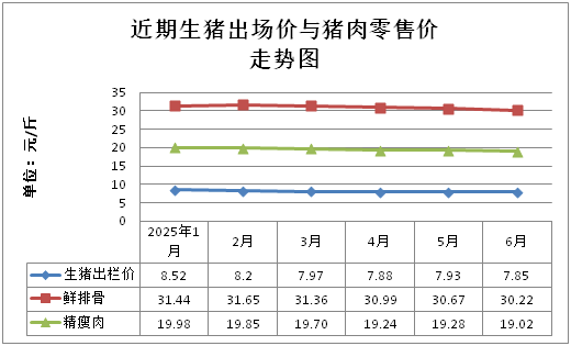我市生猪、仔猪出场价出栏均价分别为每公斤15.70元、36.05元,环比分别下降0.95%、下降3.09%,同比分别下降18.53%、下降21.20%;鲜排骨、精瘦肉、牛肉、带骨羊肉零售均价分别为每斤30.22元、19.02元、46.49元、42.37元,环比分别下降1.47%、下降1.35%、上涨0.39%、上涨1.34%,同比分别上涨0.40%、上涨2.42%、下降1.19%、下降0.47%;饲料类价格,玉米、豆粕、麦皮购进均价分别为每公斤2.54元、3.48元、2.20元,环比分别上涨0.79%、下降3.33%、上涨0.46%,同比分别上涨0.40%、下降2.79%、上涨18.28%。
