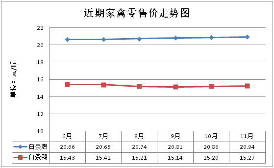 白条鸡、白条鸭零售均价分别为每斤20.94元、15.27元,环比分别上涨0.29%、上涨0.46%,同比分别上涨2.60%、下降0.52%;鸡蛋、咸鸭蛋零售均价分别为每斤6.36元、8.93元,环比分别下降0.47%、上涨0.45%,同比分别下降2.90%、下降2.72%。