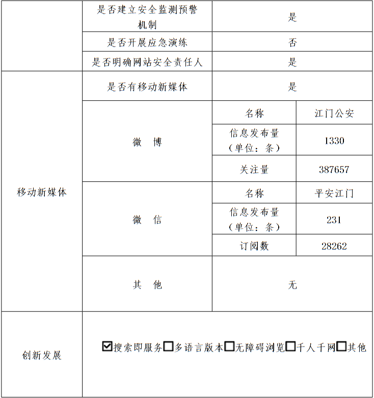 2017年政府网站工作年度报表(江门市公安局)