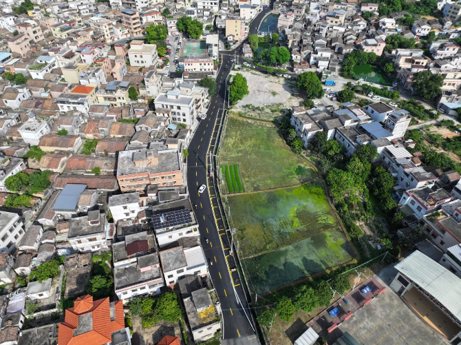 7月26日晚上21时,杜阮镇松岭村传来一阵欢呼和鼓掌声。在夜色笼罩下,刚刚完成沥青路面铺装的Y118乡道犹如一条崭新发亮的黑色缎带,由村口蜿蜒铺展至村内,将一幢幢民居连接起来,与路旁的鱼塘、绿树相映成趣,成为一道耀眼的乡村风景线。