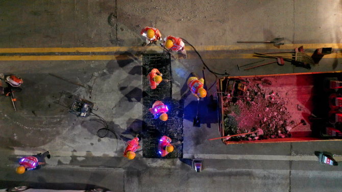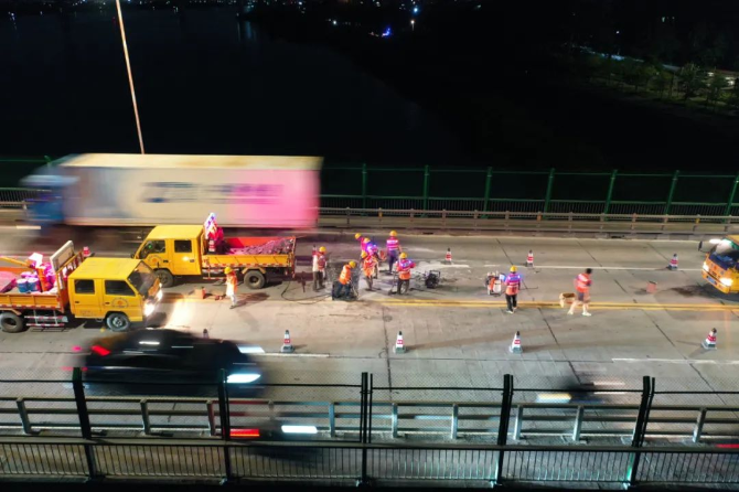近期,“龙舟水”暴雨频发,为防止雨水渗入梁体侵蚀破坏桥梁,市区公路事务中心采用水泥混凝土路面修补胶(弹性环氧修补胶),拌和出高强度的环氧混凝土对桥面开展修复工作。自5月30日起,组织应急维修队伍在夜间22时至凌晨5时车流量较少时段错峰抢修施工,完成部分破损桥面铺装修复,有效做好安全防范,保障桥梁安全畅通。截至6月6日,该中心累计出动机械车辆30台班、应急维修人员80余人次。