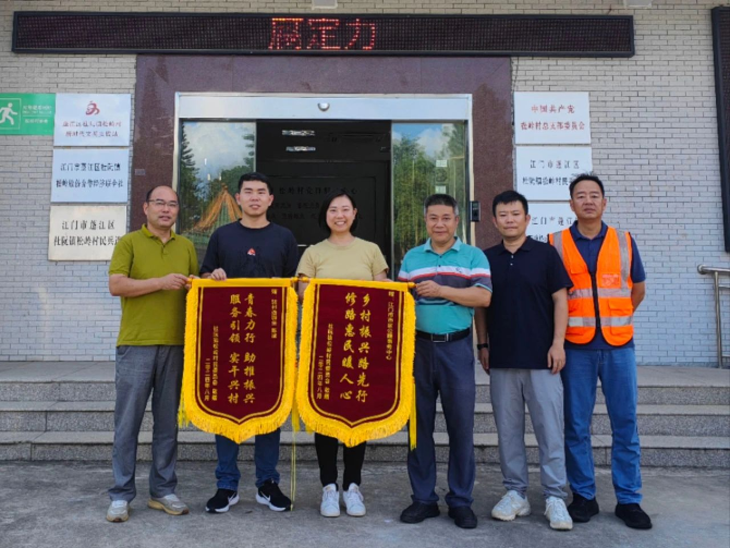 杜阮松岭村委会为市区公路事务中心、驻村干部送上锦旗