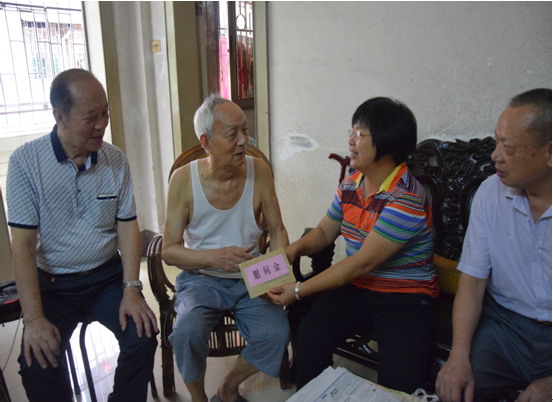 为庆祝中国共产党成立96周年,6月29-30日,新会区供销社纪检组长林丽娟带领党员义工组成慰问团,走访慰问困难党员和老党员,为他们送去党的温暖和节日的祝福。