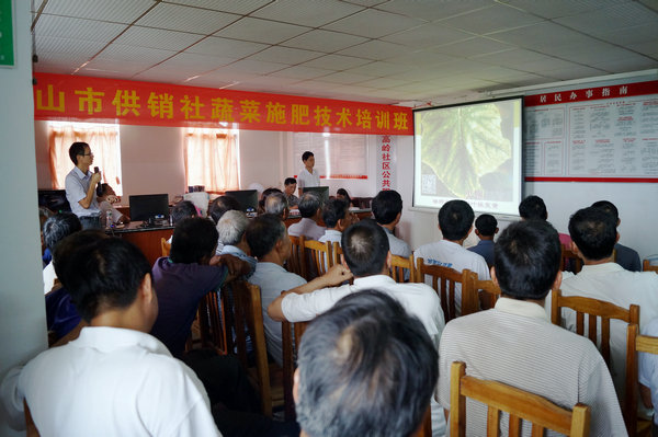 邓小富同志结合当地的实际,采用PPT图文并茂的授课方式,用通俗易懂的语言,形象生动的例子向农民朋友讲解了肥料基本知识、各种元素的生理功能、如何科学施肥和施肥误区、如何选择肥料等四方面内容。通过图片对比显示,农民朋友更直观地了解到农作物在各个生长期对元素的需求,以及在缺少某种元素的病症差别,以便在生产过程中找准病因,对症施肥。另外,结合当地农户有种植蔬菜的习惯,专门讲解了蔬菜种植过程中的需肥特点,包括蔬菜对肥料的需求情况、元素对蔬菜生长影响、种植过程中容易缺少的元素等。授课结束后,邓小富同志一一解答了农民朋友在种植过程遇到的问题。农民朋友纷纷表示此次培训班的内容与他们的农业生产息息相关,对他们的农业生产有较强的指导作用。