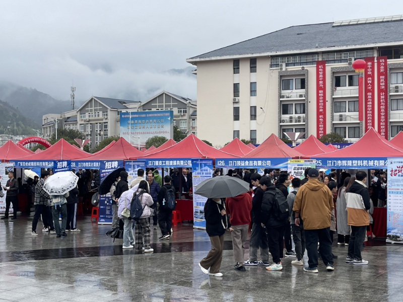 广东欣龙隧道装备股份有限公司、江门顶津食品有限公司、江门市贝尔斯顿电器有限公司、康师傅(江门)饮品有限公司、钧崴电子科技股份有限公司、江门市盈声电子科技有限公司、广东铭锋科技有限公司、江门耀皮工程玻璃有限公司、江门顶益食品有限公司、江门市得实计算机外部设备有限公司、广东安必成精密科技有限公司、江门市辉隆塑料机械有限公司、江门市蓬江区星火语言能力培训有限公司等13家企业(其中1家“小巨人”企业,6家广东省专精特新中小企业)组成的我市招聘团共提供岗位48个,需求人数248人,涵盖了高分子材料、化工、制药、智能制造、食品加工、机械制造、电气自动化多个领域。尽管招聘会当日下起了雨,仍浇灭不了求职者热情,我市招聘展位前挤满了撑着雨伞前来应聘的毕业生。