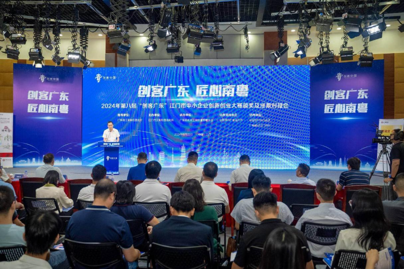 为贯彻落实党的二十大“支持中小微企业发展”“支持专精特新企业发展”要求,推动中小微企业创业创新与转型升级,营造大众创业万众创新良好氛围,2024年8月22日,由广东省工业和信息化厅指导、江门市工业和信息化局主办的2024年第八届“创客广东”江门市中小企业创新创业大赛决赛及颁奖仪式暨成果对接会在江门市广播电视台举行。省工业和信息化厅一级调研员陈立军、市政府副秘书长麦敏杰、市工业和信息化局副局长张斌,以及各县(市、区)工业和信息化主管部门、行业企业、高校、科研院所以及投融资机构代表等近200人参加了本次活动。