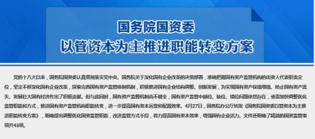 一图解读!国务院国资委以管资本为主推进职能转变方案