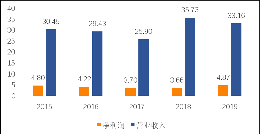 资产经营效益整体小幅度增长。市属企业营收由2015年的30.45亿元增长至2019年的33.16亿元,年复合增长率为2.15%;净利润由2015年的4.80亿元增长至2019年的4.87亿元,年复合增长率0.36%,增长较慢,资产经营效益水平较低。
