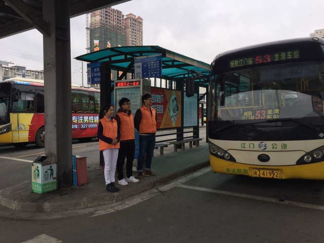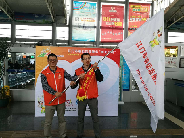 2017年1月13日是春运第一天,我局联合团市委分别在江门汽车总站、城轨江门站外的公交站开展“情满旅途 畅享交通”志愿活动,组织志愿者在客运站场为旅客提供出行咨询、行李搬运、安全劝导等志愿服务。