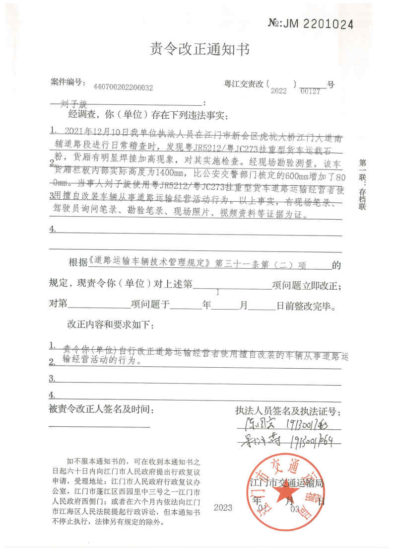 你(单位)因违反交通运输行政管理法规,本机关已作出行政处罚决定和责令改正通知书(具体内容详见附件)。依照《中华人民共和国民事诉讼法》第九十二条的规定,因受送达人采用其他方式无法送达,现向你(单位)公告送达《行政处罚决定书》和《责令改正通知书》。自公告之日起,经过30日即视为送达。