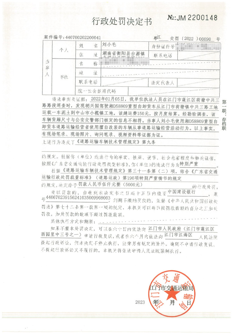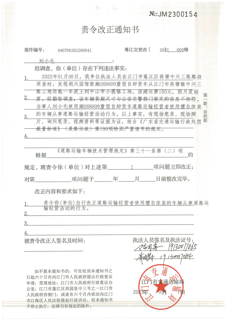 你(单位)因违反交通运输行政管理法规,本机关已作出行政处罚决定和责令改正通知书(具体内容详见附件)。依照《中华人民共和国民事诉讼法》第九十二条的规定,因受送达人采用其他方式无法送达,现向你(单位)公告送达《行政处罚决定书》和《责令改正通知书》。自公告之日起,经过30日即视为送达。