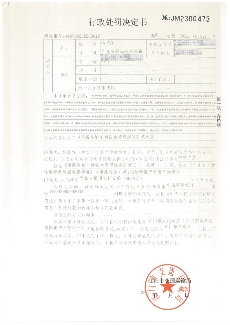 联系地址:江门市潮连大道18号江门市交通运输局违章处理窗口,电话:0750-3887771。