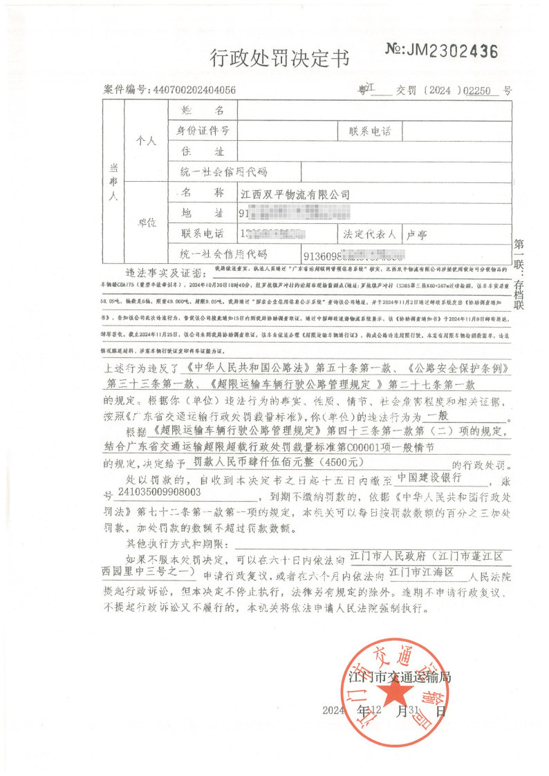 你(单位)因违反交通运输行政管理法规,本机关已作出行政处罚决定和责令改正通知书(具体内容详见附件)。依照《中华人民共和国民事诉讼法》第九十五条的规定,因受送达人采用其他方式无法送达,现向你(单位)公告送达《行政处罚决定书》和《责令改正通知书》。自公告之日起,经过30日即视为送达。