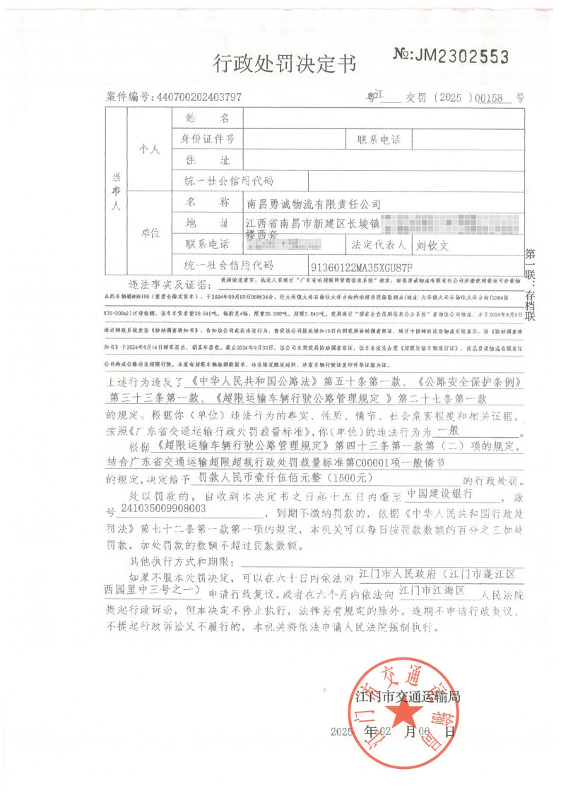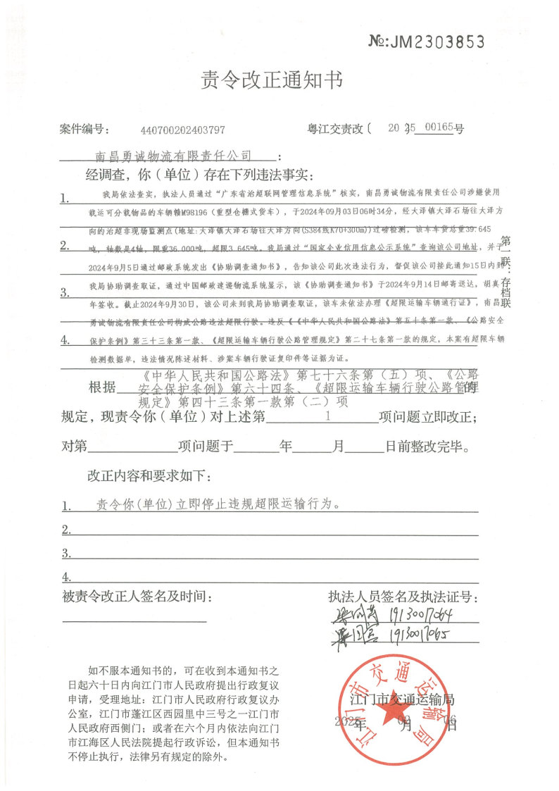 你(单位)因违反交通运输行政管理法规,本机关已作出行政处罚决定和责令改正通知书(具体内容详见附件)。依照《中华人民共和国民事诉讼法》第九十五条的规定,因受送达人采用其他方式无法送达,现向你(单位)公告送达《行政处罚决定书》和《责令改正通知书》。自公告之日起,经过30日即视为送达。