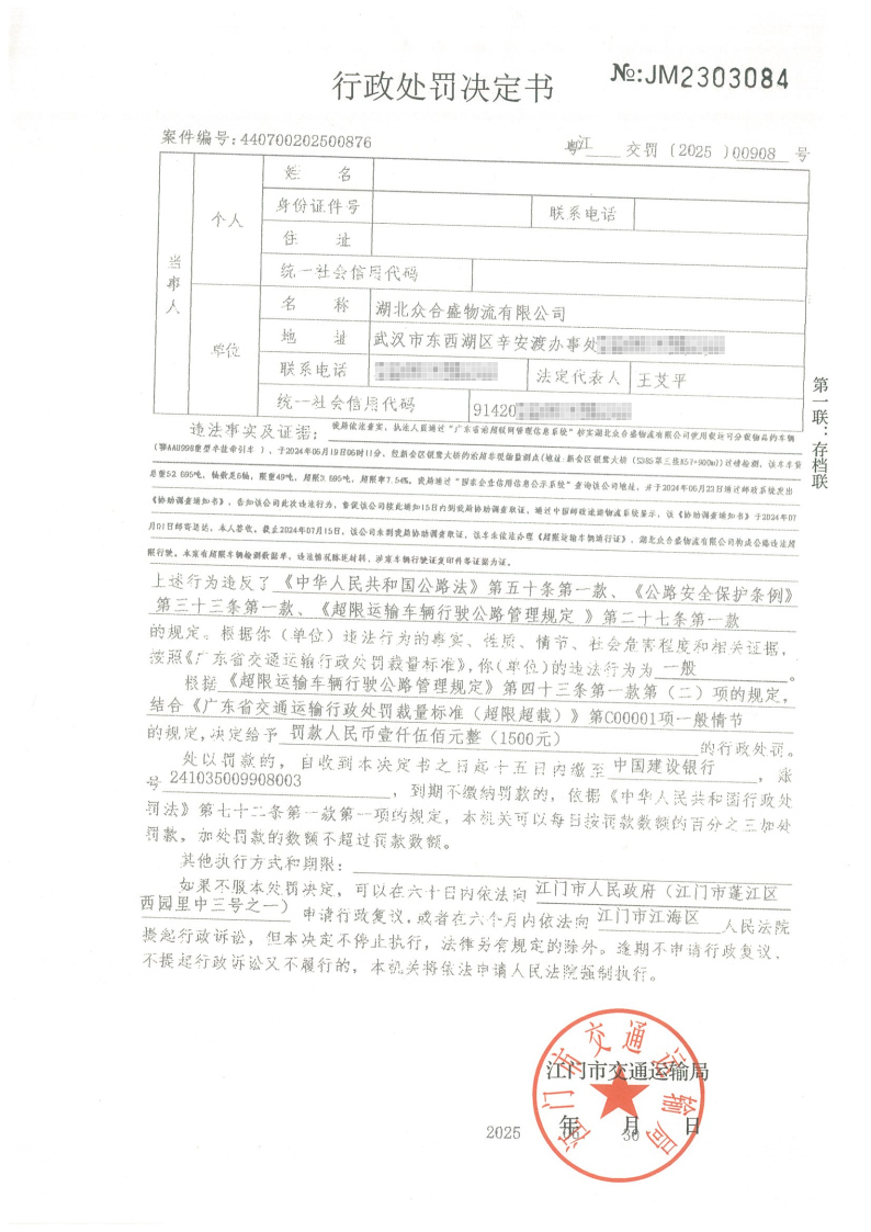 湖北众合盛物流有限公司: