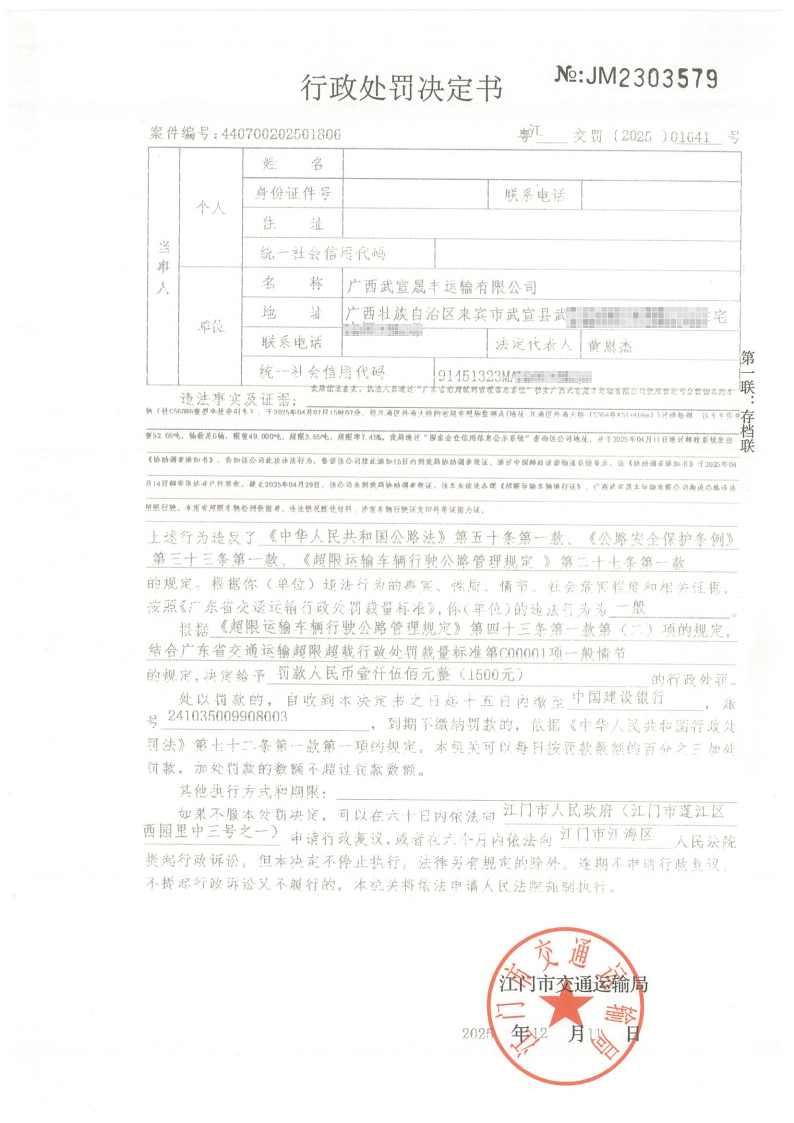 你(单位)因违反交通运输行政管理法规,本机关已作出行政处罚决定和责令改正通知书(具体内容详见附件)。依照《中华人民共和国民事诉讼法》第九十五条的规定,因无法以其他方式向你(单位)送达,现向你(单位)公告送达《行政处罚决定书》和《责令改正通知书》。自发出公告之日起,经过30日即视为送达。