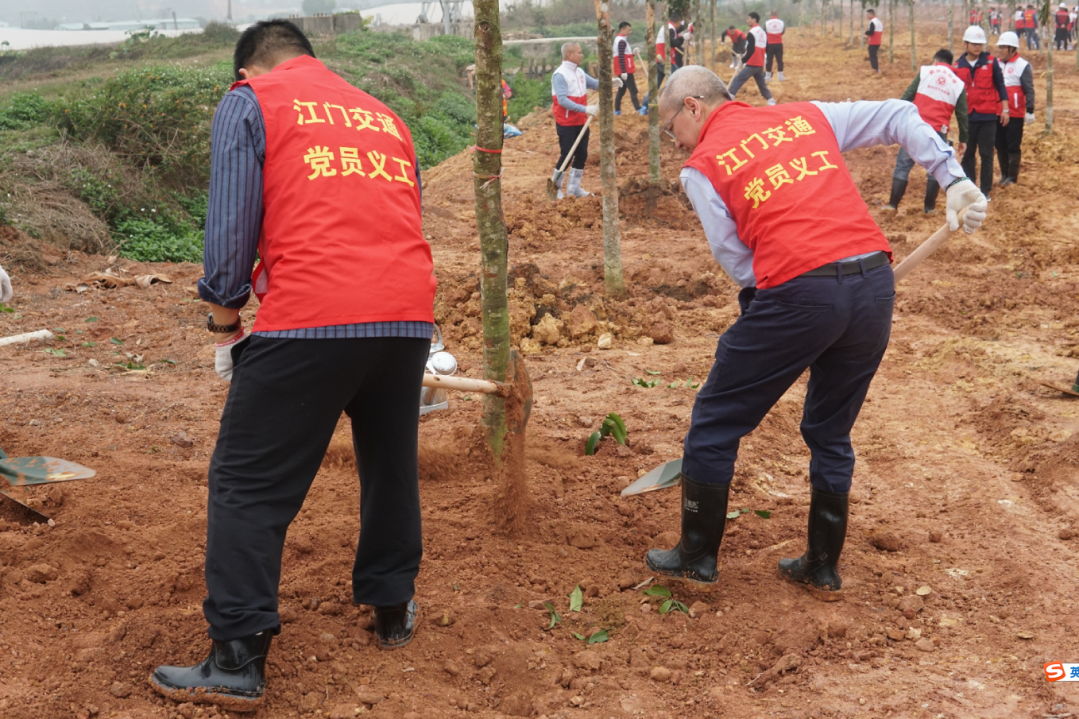 此次活动以推进绿美江门生态建设和美丽公路建设为载体,组织近114名党员志愿者共同栽种仁面子等乔木共100棵,种植面积达3250平方米。