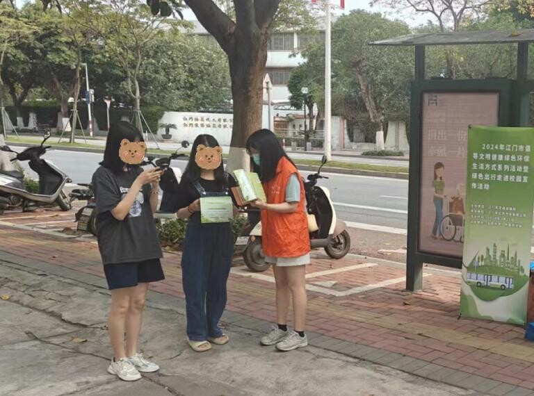 工作人员通过摆放宣传展架、派发《江门市文明行为促进条例》《公交优先·绿色出行倡议书》等宣传单张,以现场讲解的方式向市民、学生普及绿色出行的重要性,倡导“优选公交、绿色出行”的理念,让广大市民更好地了解支持公交、选择公交。
