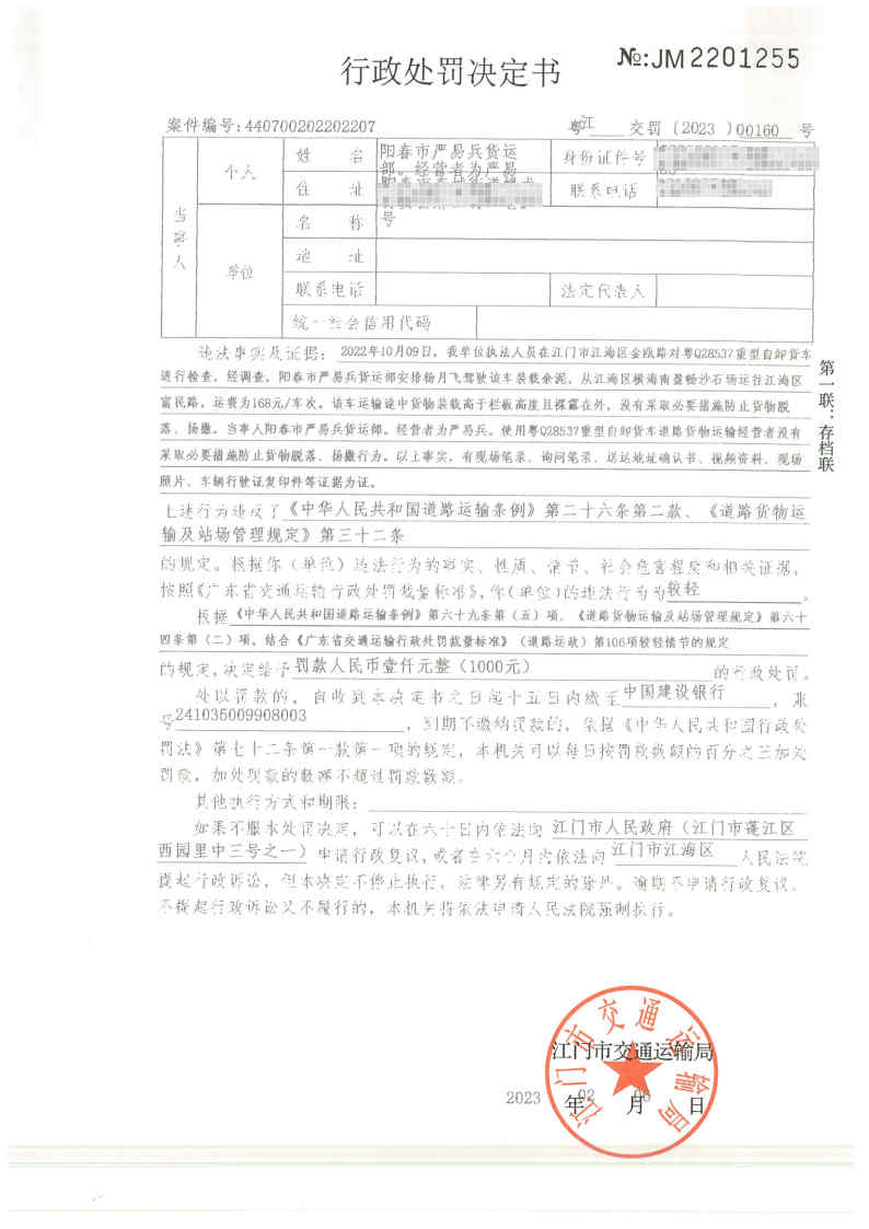 你因违反交通运输行政管理法规,本机关已作出行政处罚决定和责令改正通知书(具体内容详见附件)。依照《中华人民共和国民事诉讼法》第九十二条的规定,因受送达人采用其他方式无法送达,现向你(单位)公告送达《行政处罚决定书》和《责令改正通知书》。自公告之日起,经过30日即视为送达。