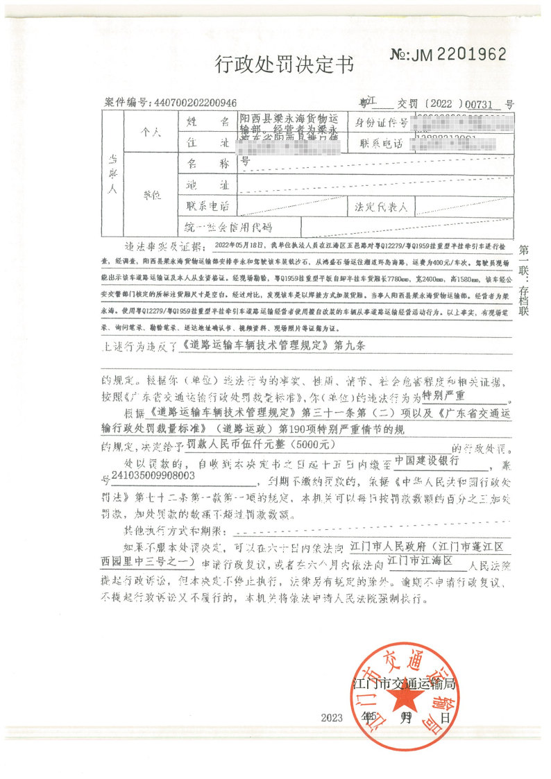 你(单位)因违反交通运输行政管理法规,本机关已作出行政处罚决定和责令改正通知书(具体内容详见附件)。依照《中华人民共和国民事诉讼法》第九十二条的规定,因受送达人采用其他方式无法送达,现向你(单位)公告送达《行政处罚决定书》和《责令改正通知书》。自公告之日起,经过30日即视为送达。
