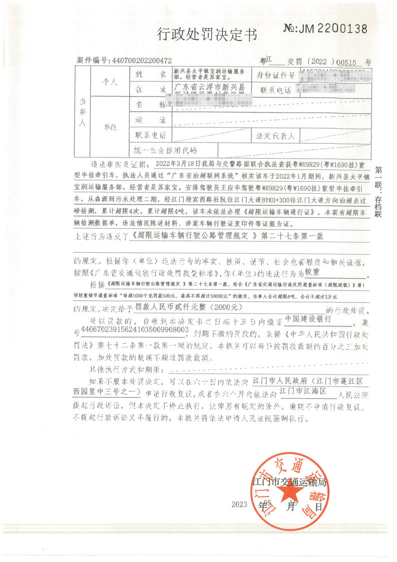 你(单位)因违反交通运输行政管理法规,本机关已作出行政处罚决定和责令改正通知书(具体内容详见附件)。依照《中华人民共和国民事诉讼法》第九十二条的规定,因受送达人采用其他方式无法送达,现向你(单位)公告送达《行政处罚决定书》和《责令改正通知书》。自公告之日起,经过30日即视为送达。